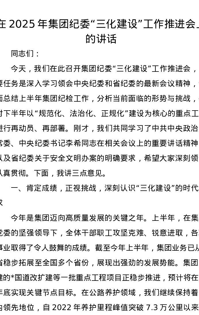 在2025年集团纪委“三化建设”工作推进会上的讲话