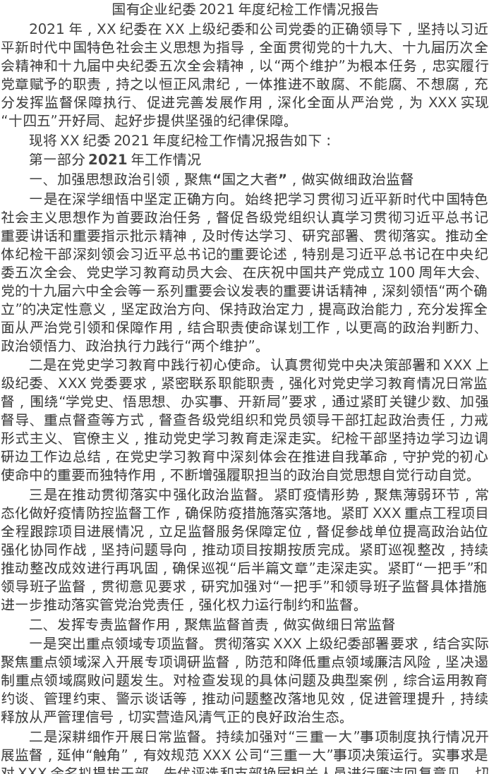 20220107国有企业纪委2021年度纪检工作情况报告