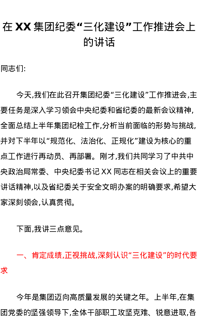 在XX集团纪委“三化建设”工作推进会上的讲话