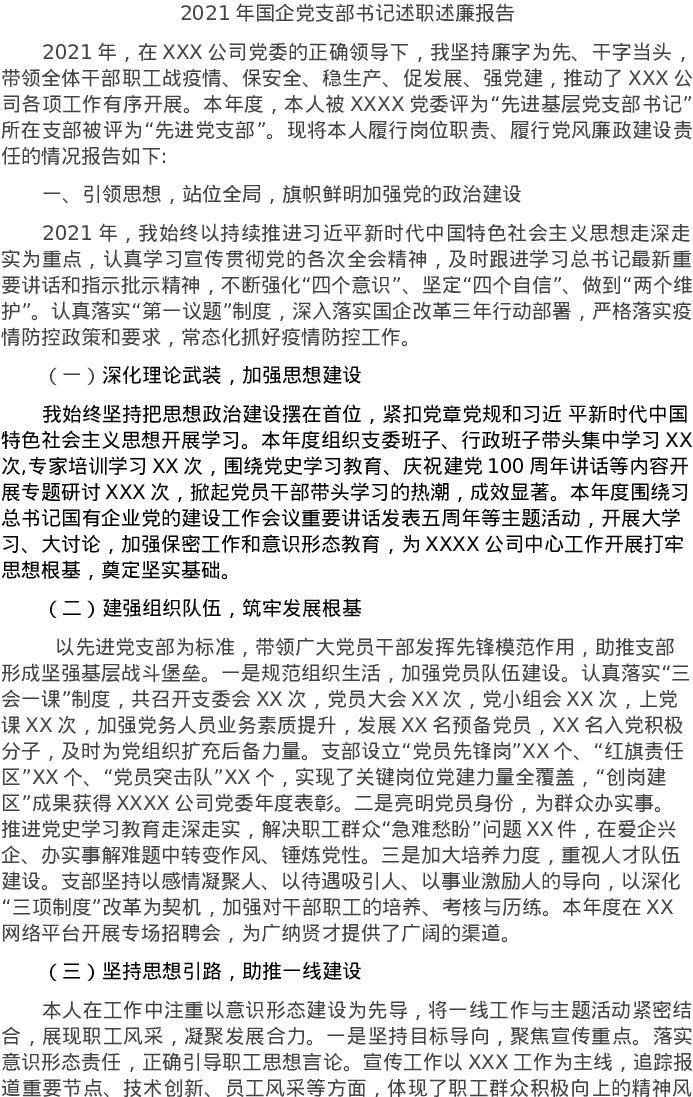 20220114-2021年国企党支部书记述职述廉报告