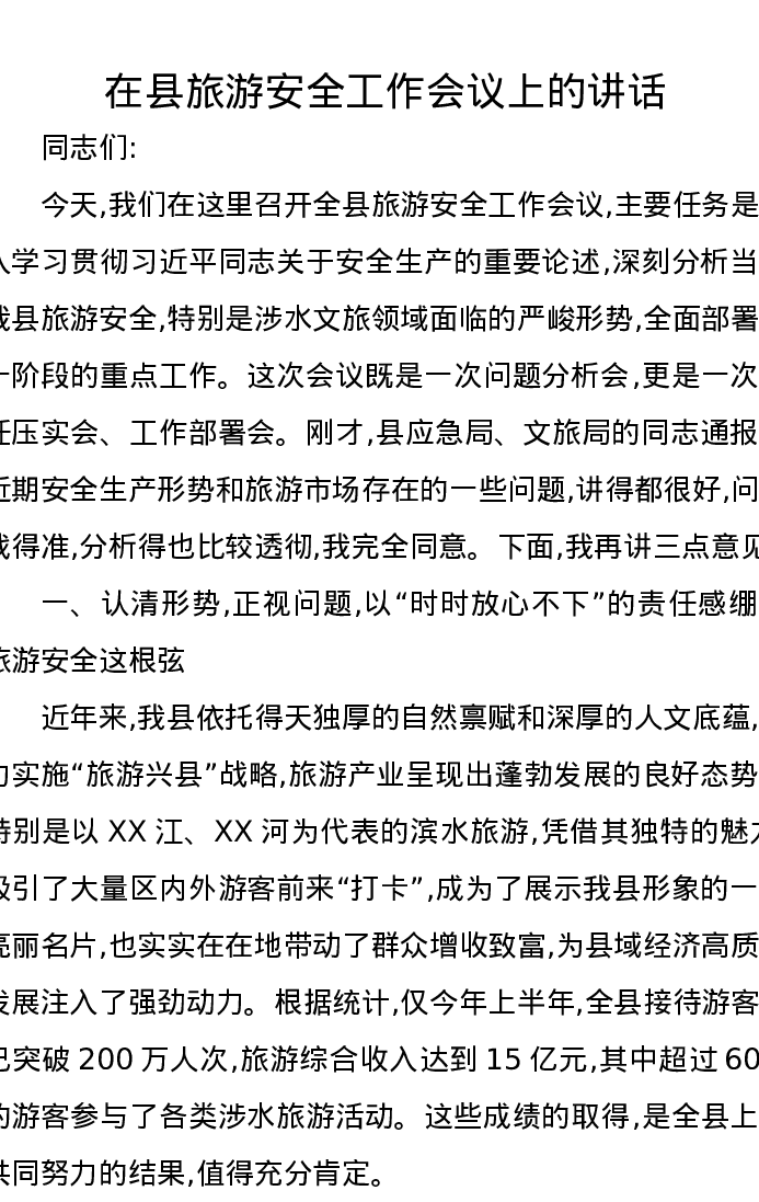 在县旅游安全工作会议上的讲话