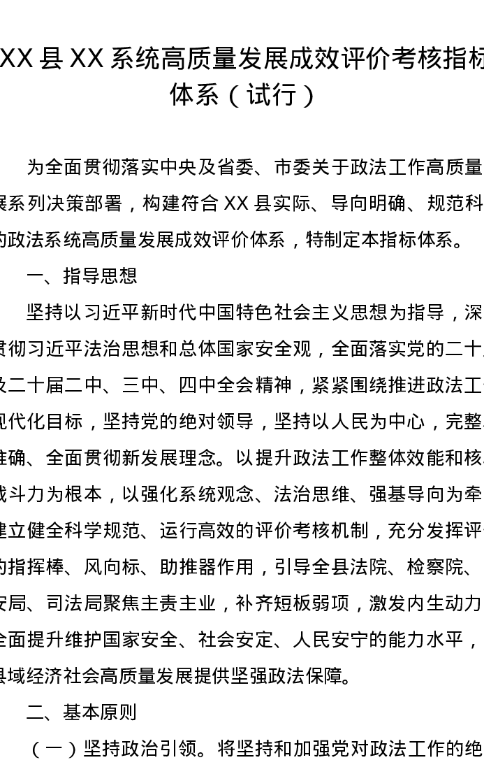 XX县XX系统高质量发展成效评价考核指标体系(试行)