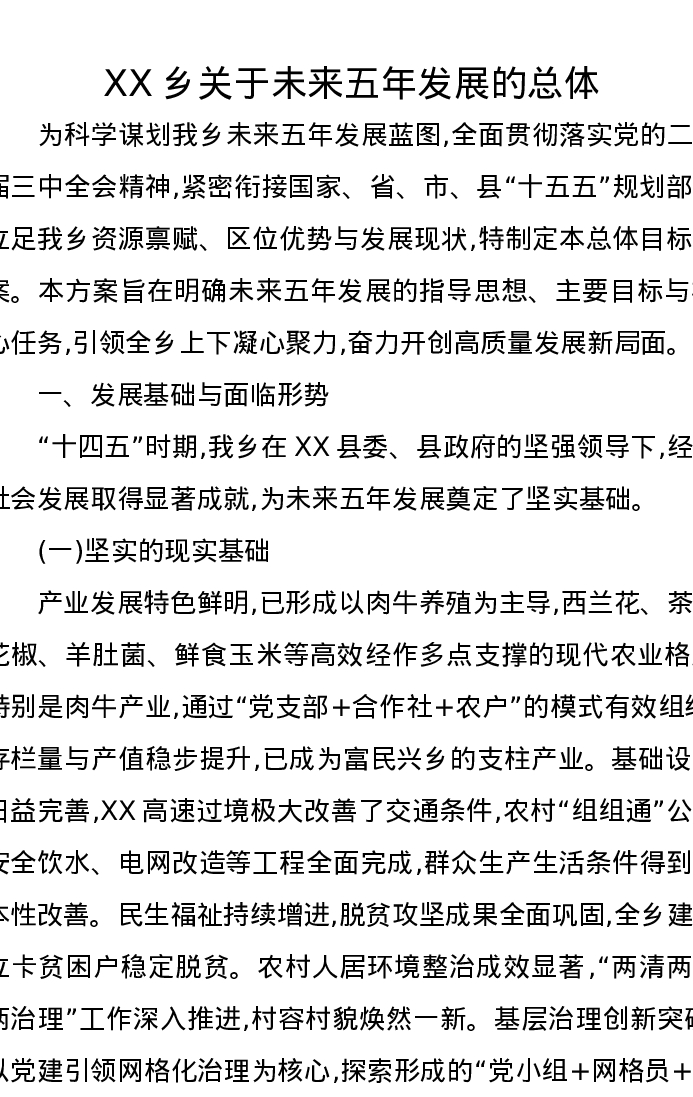 XX乡关于未来五年发展的总体