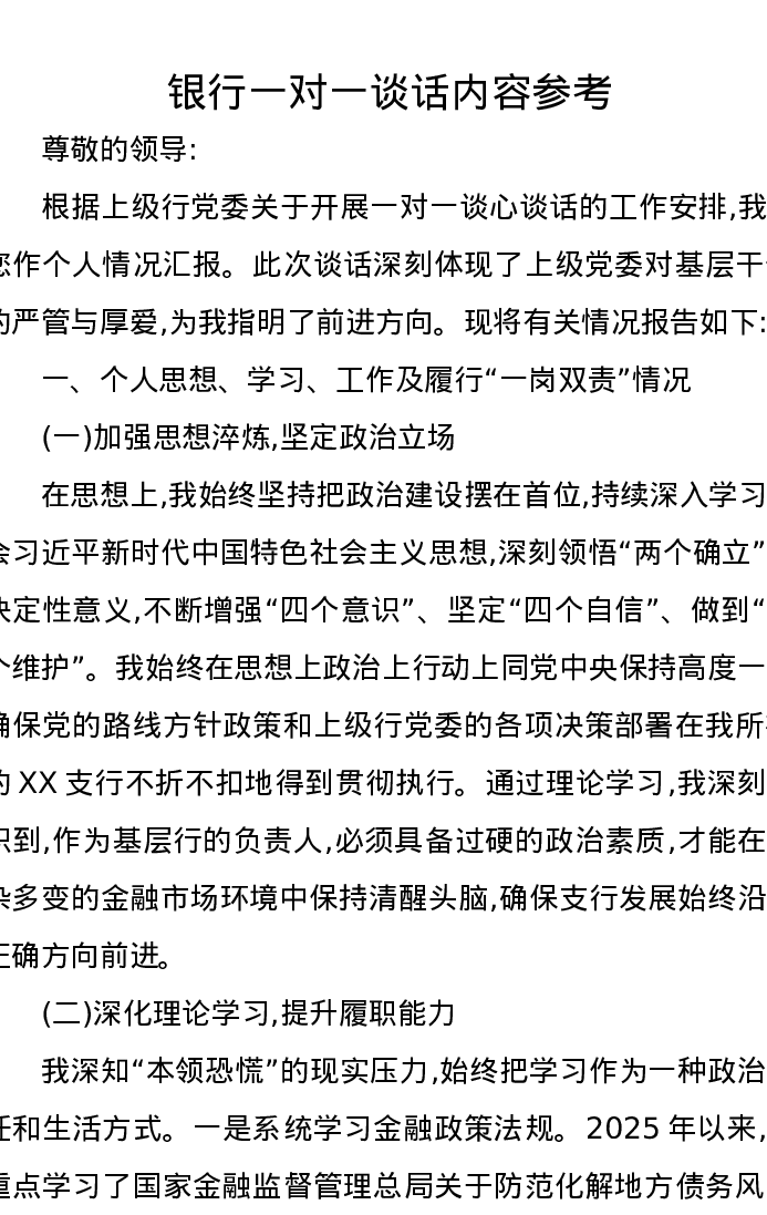 银行一对一谈话内容参考