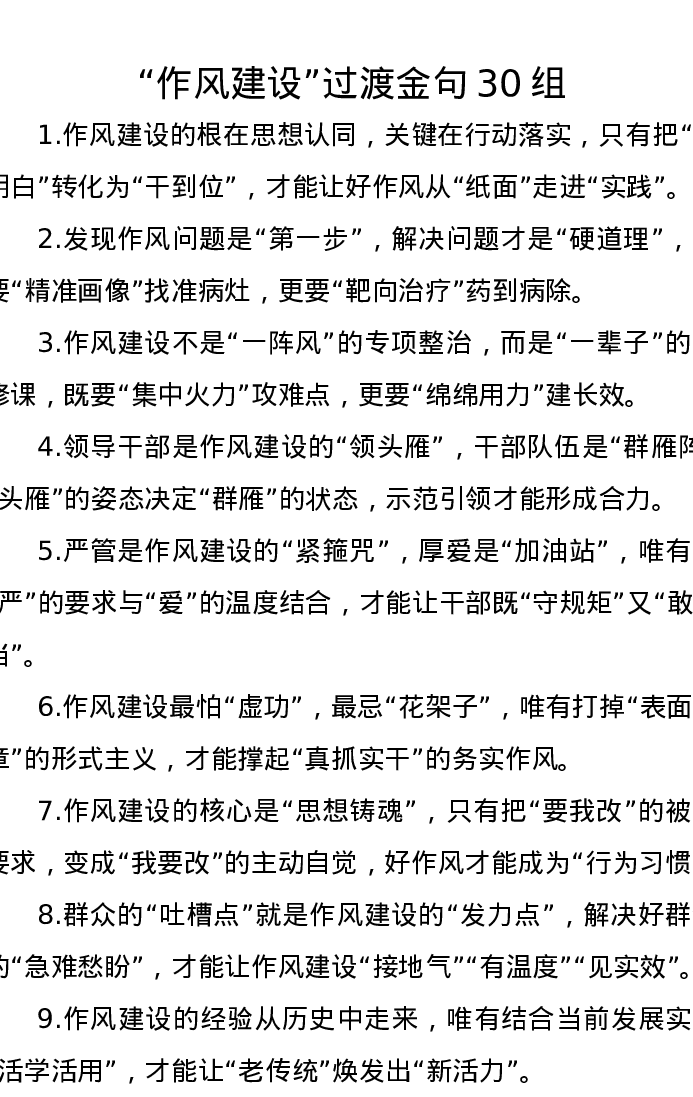 “作风建设”过渡金句30组
