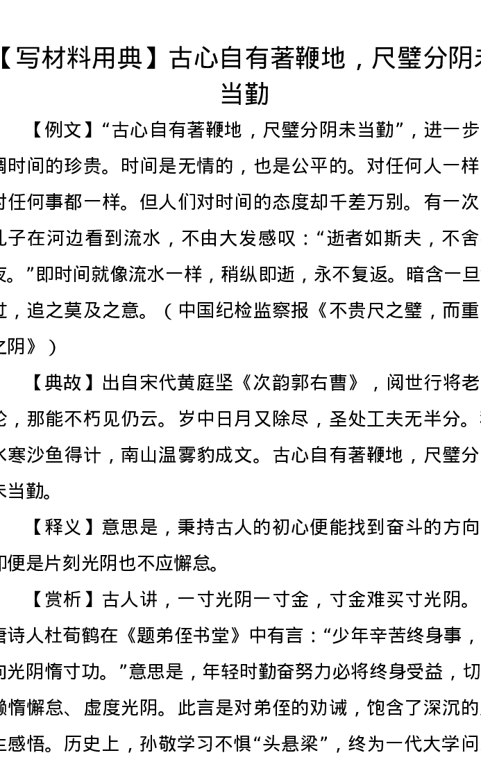【写材料用典】古心自有著鞭地,尺璧分阴未当勤