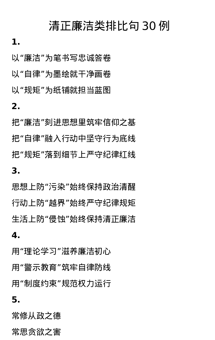 清正廉洁类排比句30例