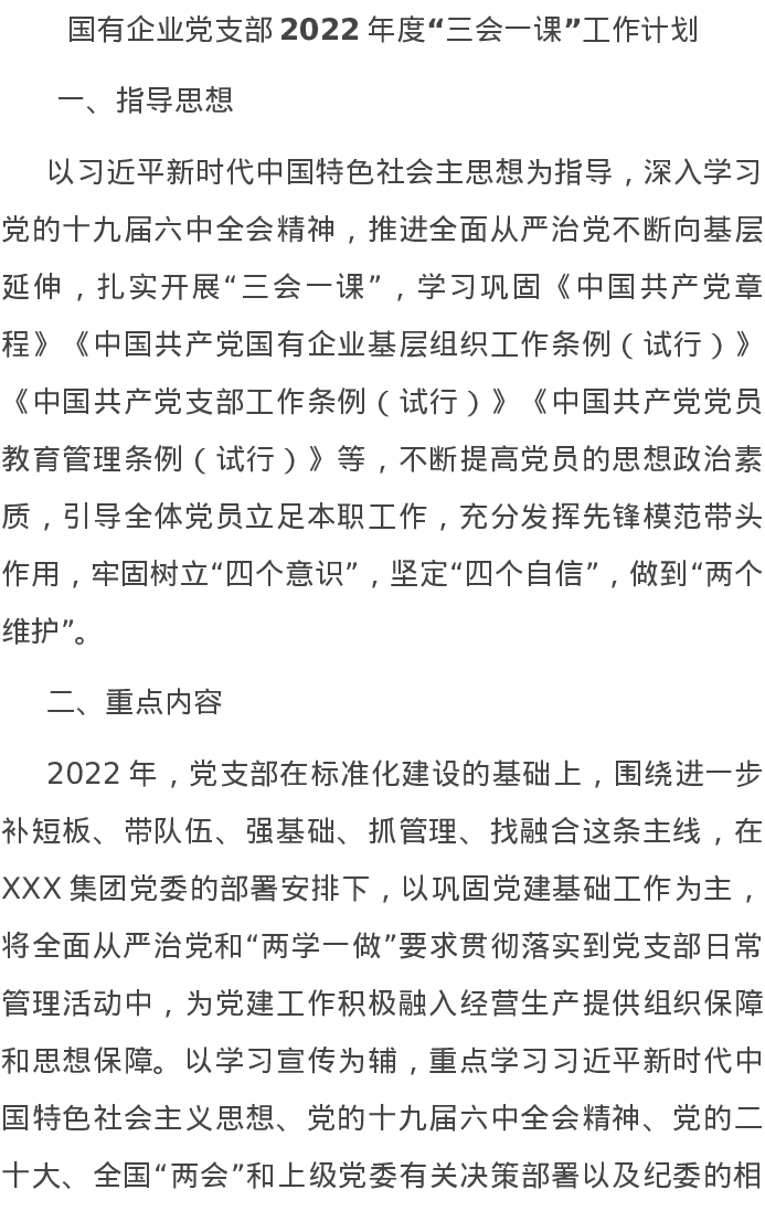 20220203国有企业党支部2022年度“三会一课”工作计划