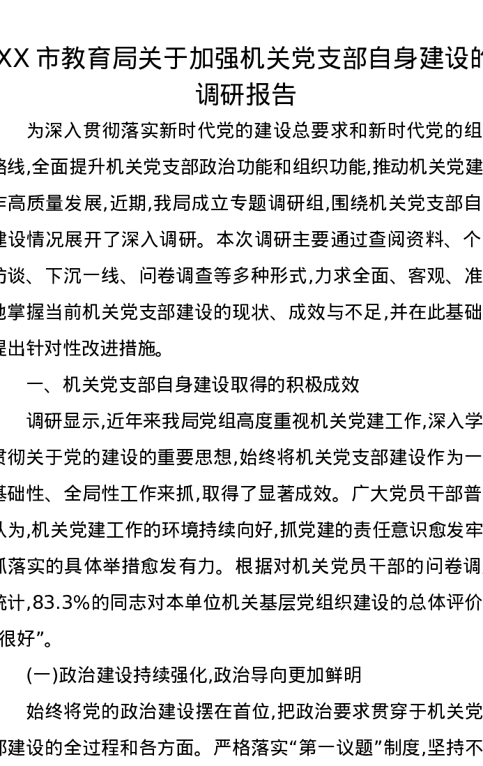 XX市教育局关于加强机关党支部自身建设的调研报告