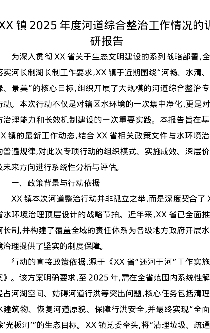 XX镇2025年度河道综合整治工作情况的调研报告
