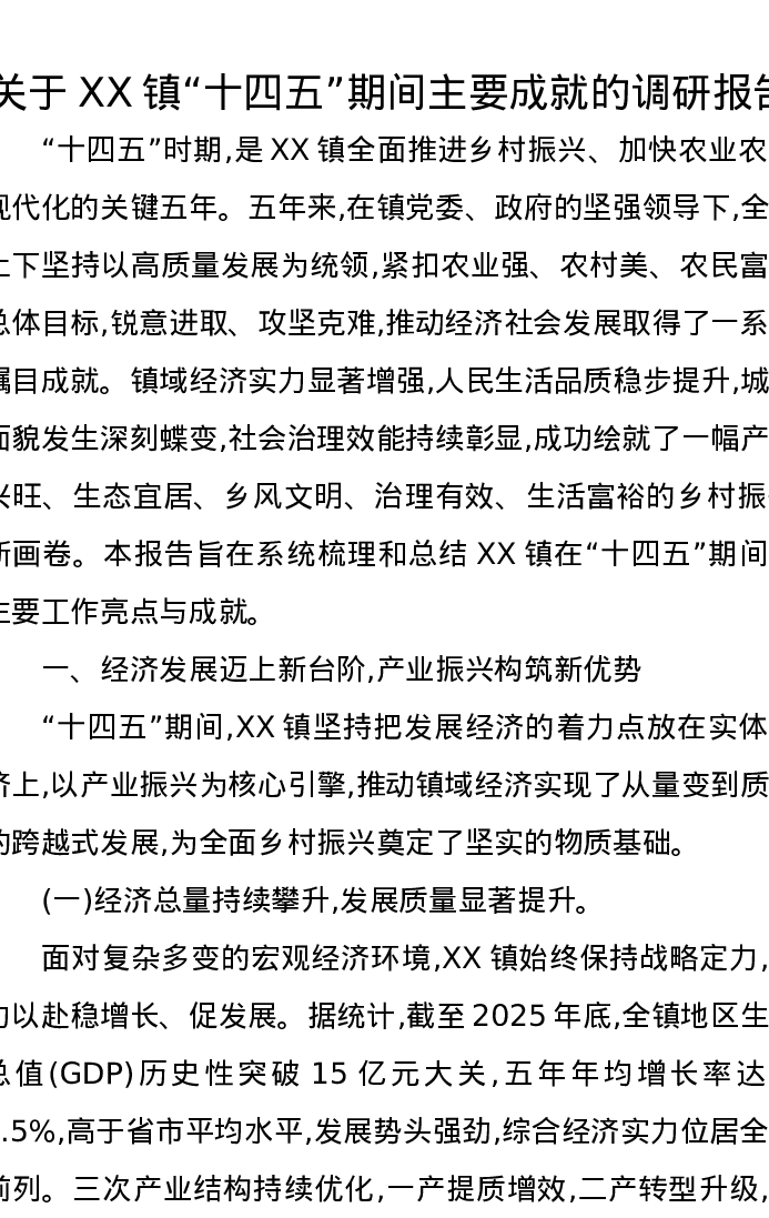 关于XX镇“十四五”期间主要成就的调研报告