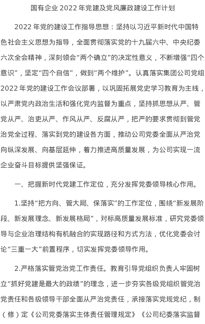 20220216国有企业2022年党建及党风廉政建设工作计划