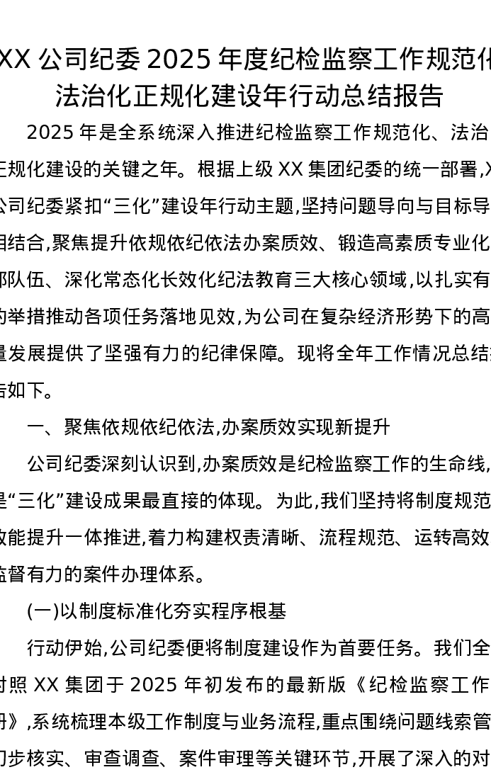 XX公司纪委2025年度纪检监察工作规范化法治化正规化建设年行动总结报告