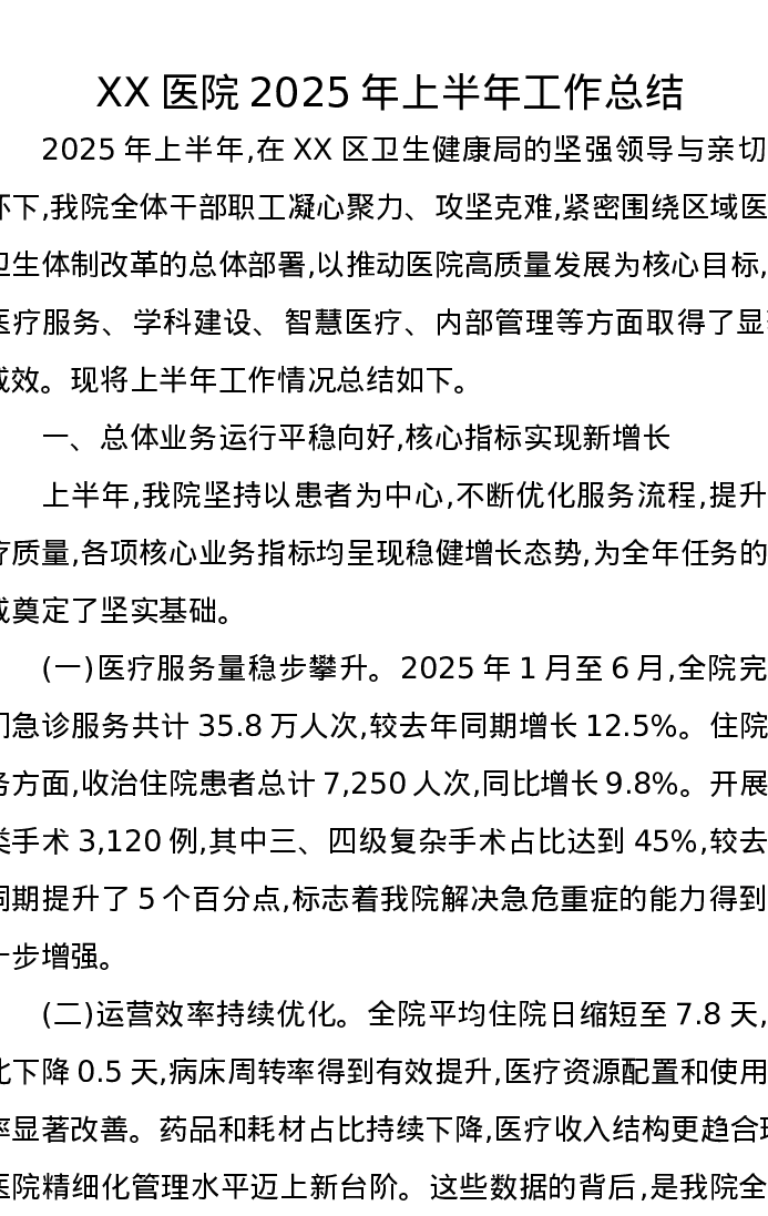 XX医院2025年上半年工作总结