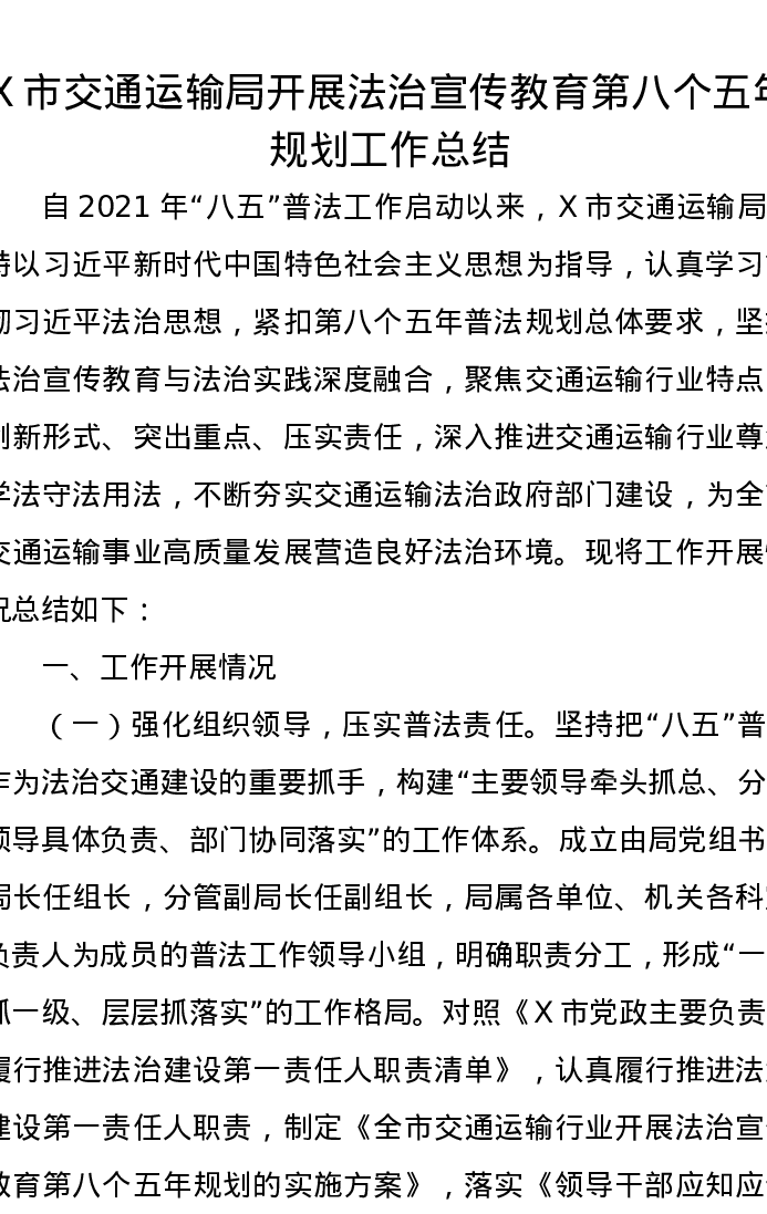 X市交通运输局开展法治宣传教育第八个五年规划工作总结