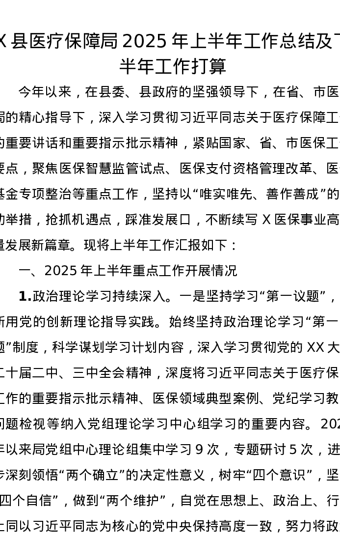 X县医疗保障局2025年上半年工作总结及下半年工作打算