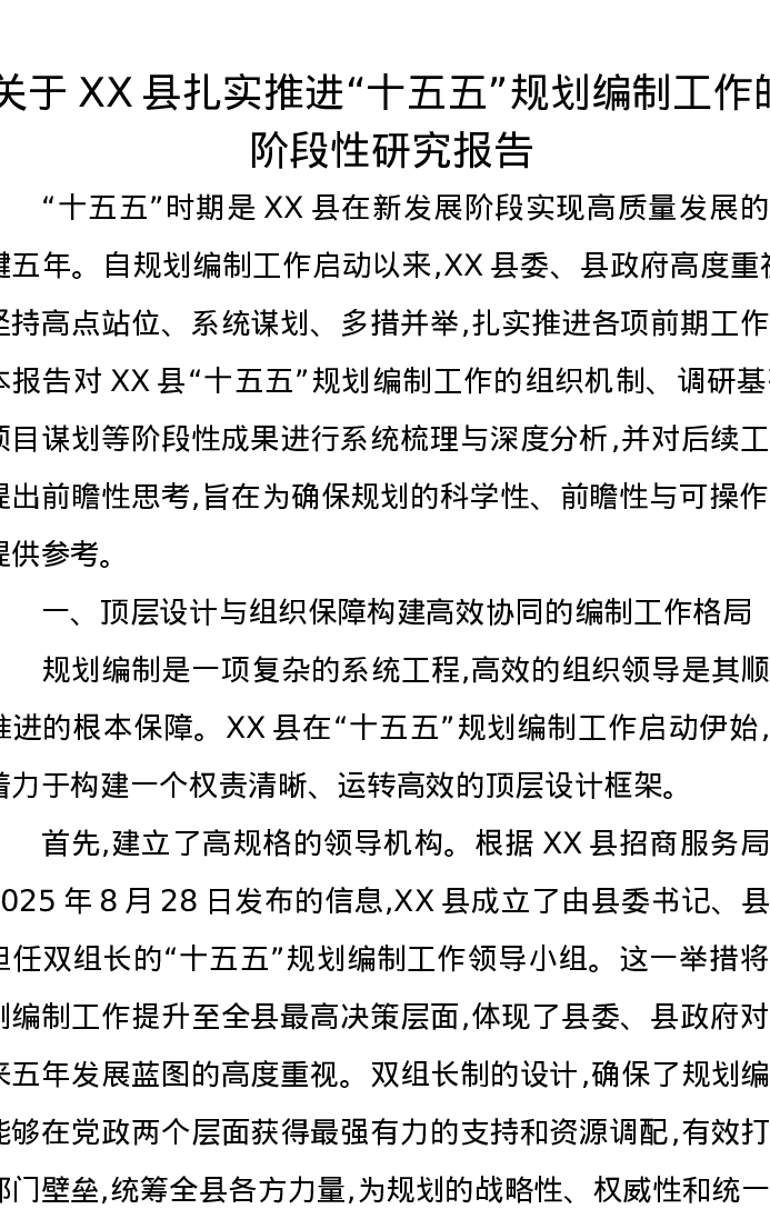 关于XX县扎实推进“十五五”规划编制工作的阶段性研究报告
