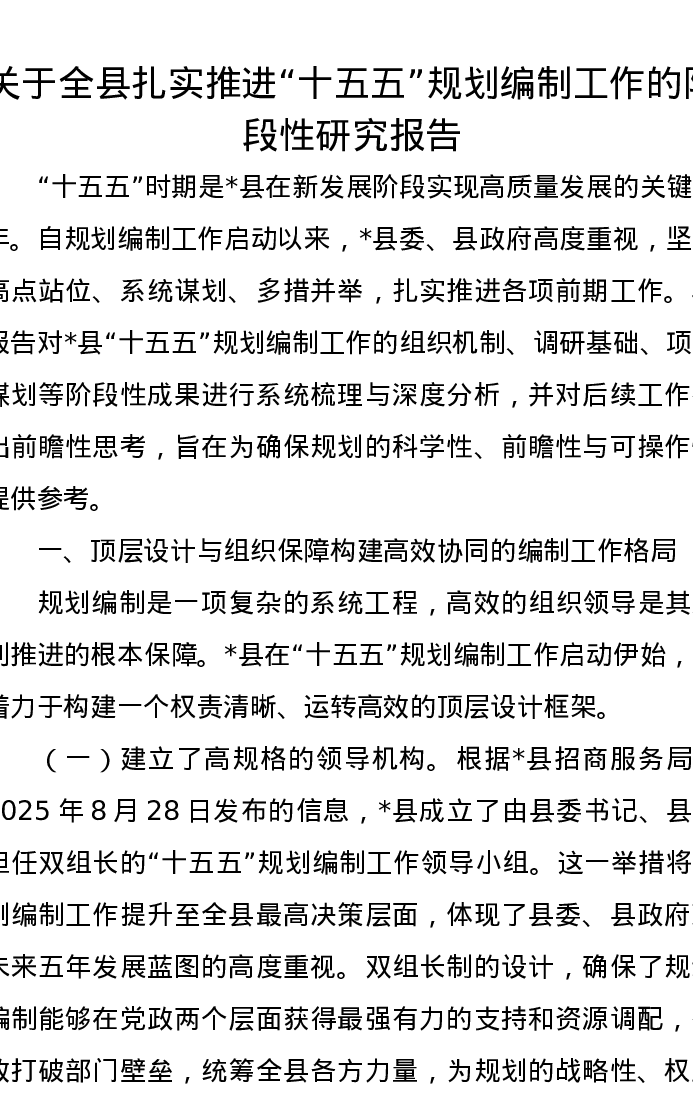 关于全县扎实推进“十五五”规划编制工作的阶段性研究报告