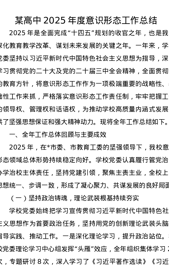 某高中2025年度意识形态工作总结