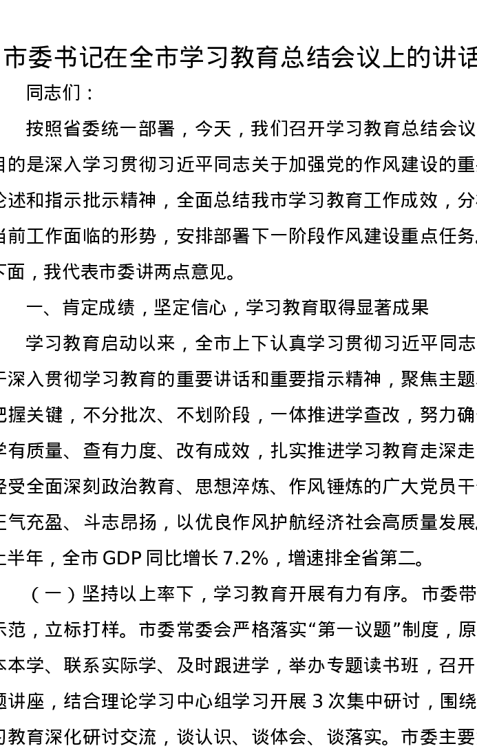 市委书记在全市学习教育总结会议上的讲话