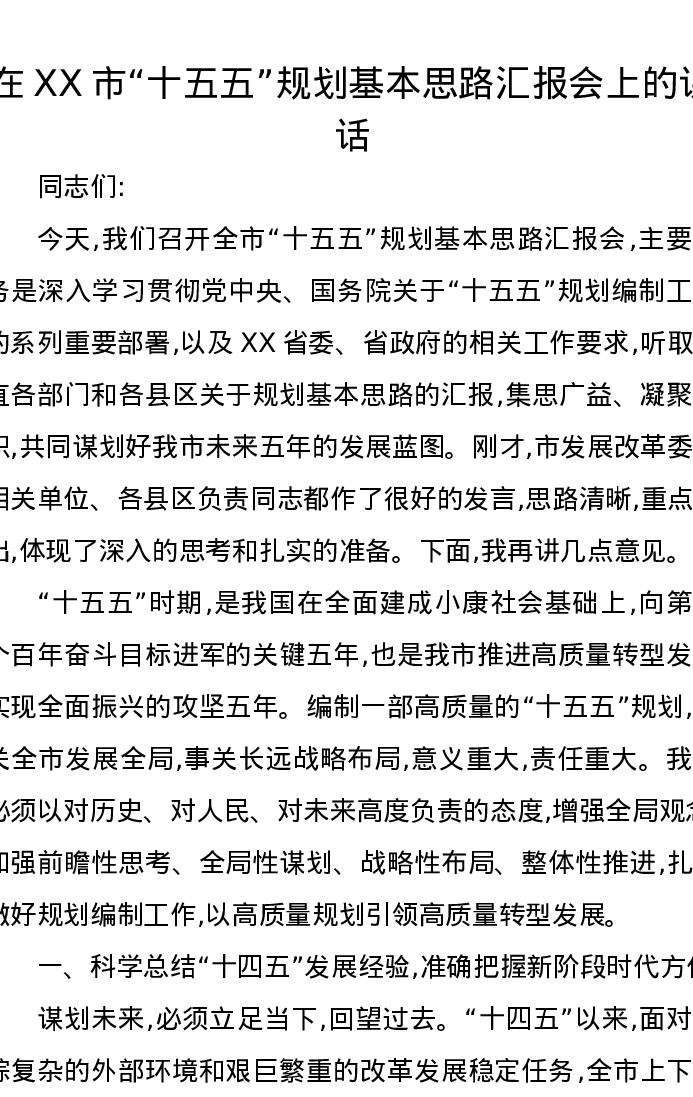 在XX市“十五五”规划基本思路汇报会上的讲话