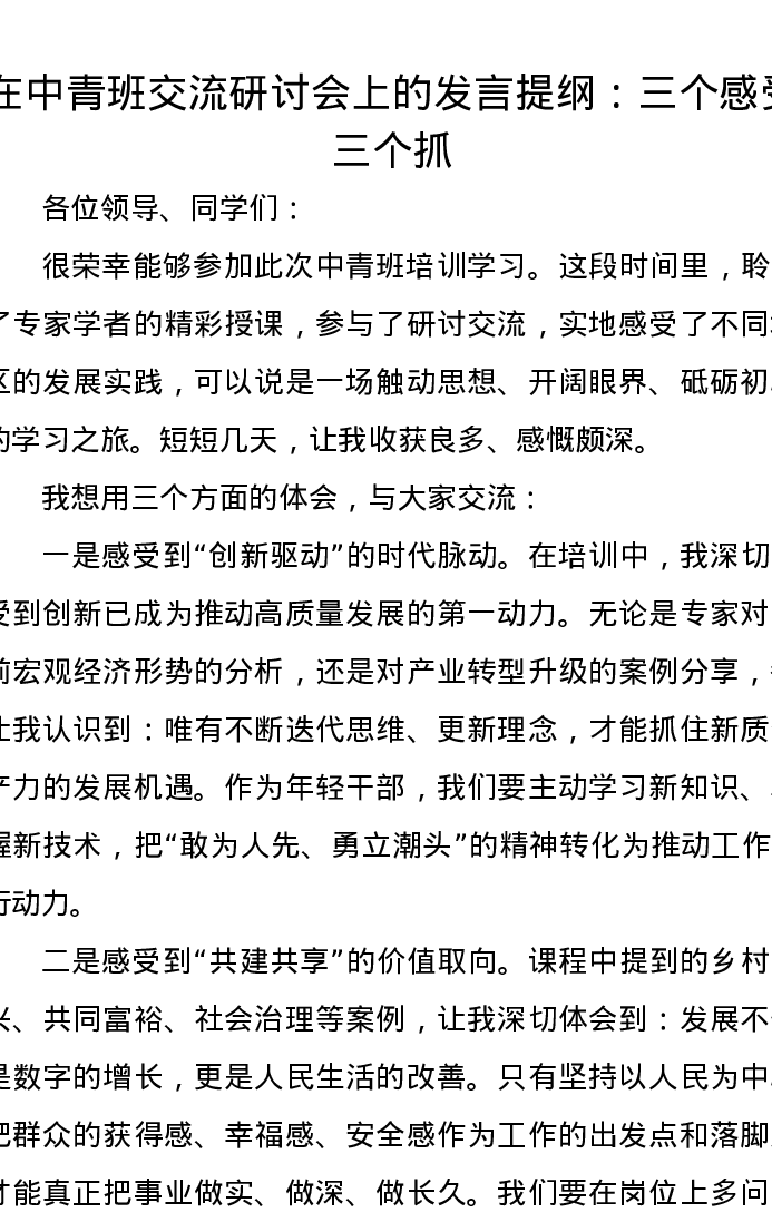 在中青班交流研讨会上的发言提纲:三个感受、三个抓