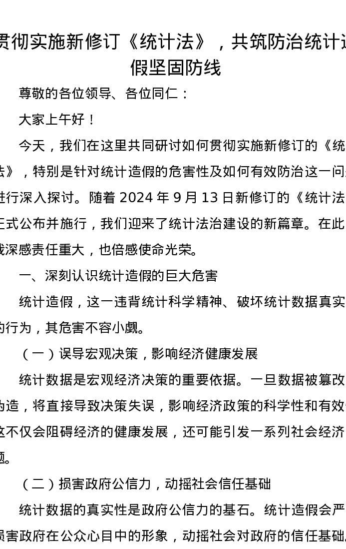 党课讲稿:贯彻实施新修订《统计法》,共筑防治统计造假坚固防线