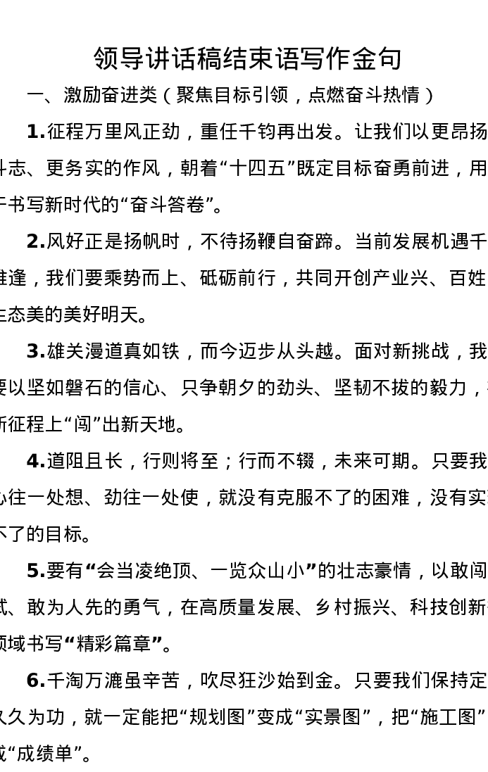 领导讲话稿结束语写作金句