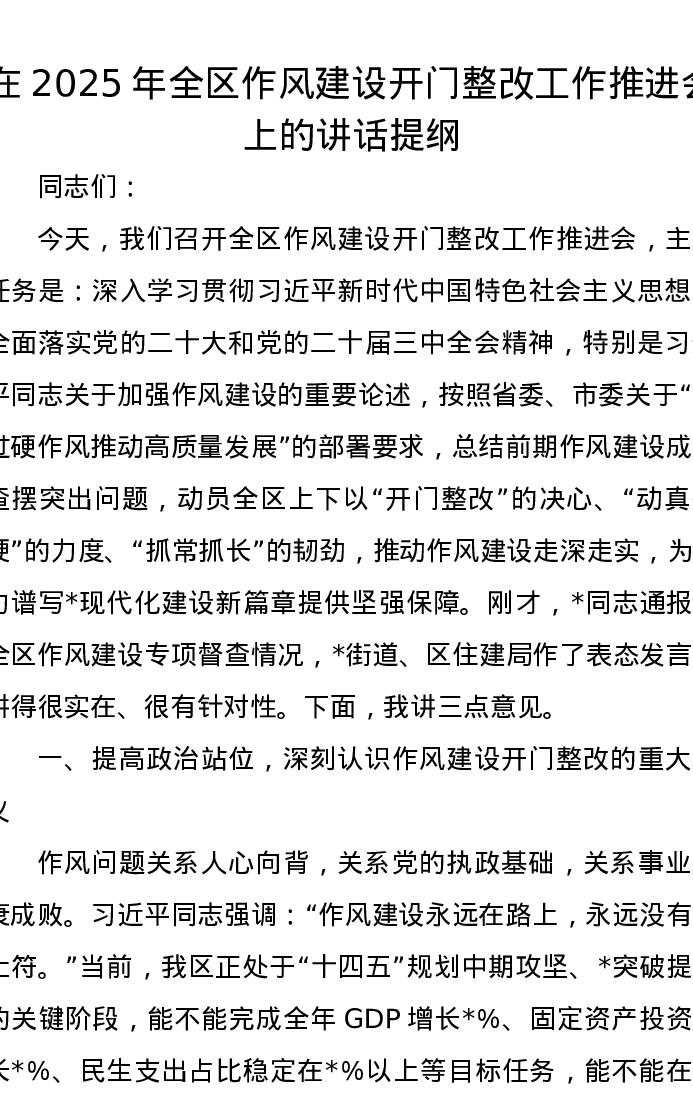在2025年全区作风建设开门整改工作推进会上的讲话提纲