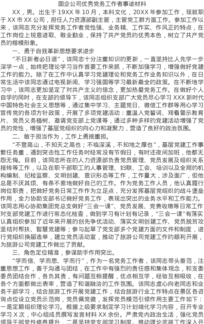20220324国企公司优秀党务工作者事迹材料