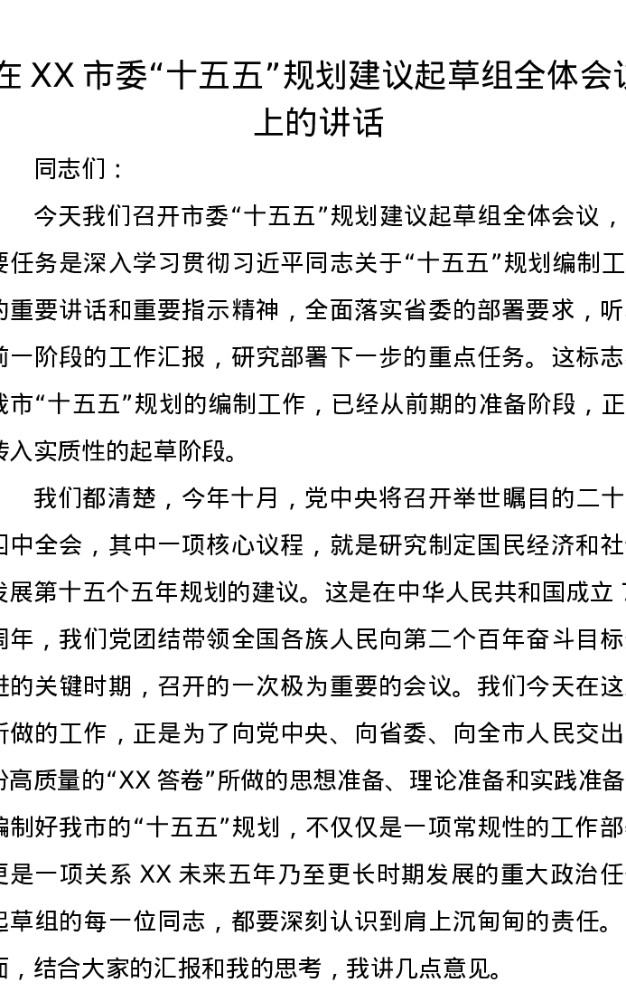 在XX市委“十五五”规划建议起草组全体会议上的讲话