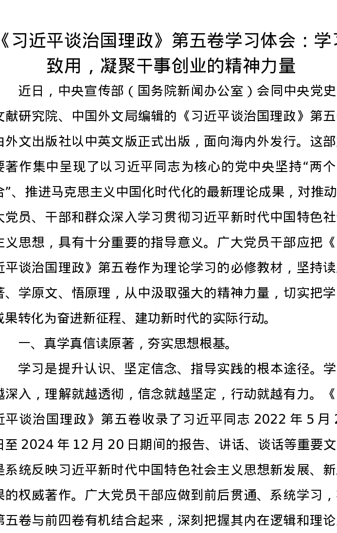 《习近平谈治国理政》第五卷学习体会:学习致用,凝聚干事创业的精神力量