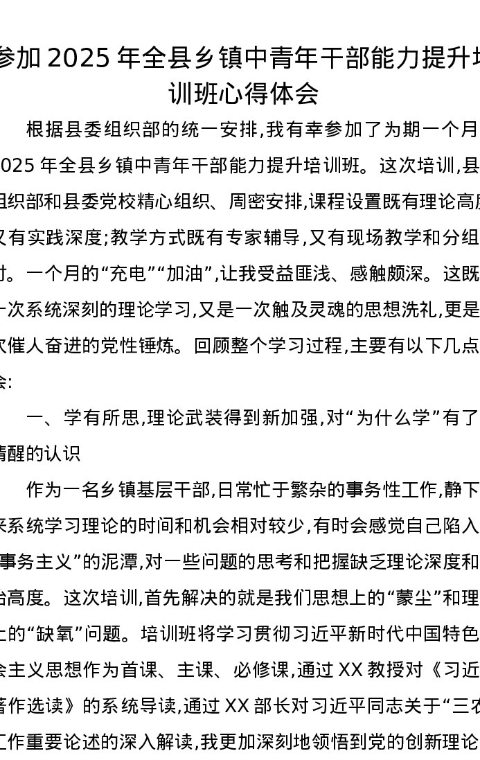 参加2025年全县乡镇中青年干部能力提升培训班心得体会