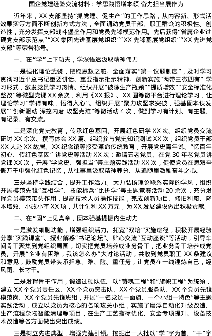 20220331国企党建经验交流材料:学思践悟增本领 奋力担当展作为
