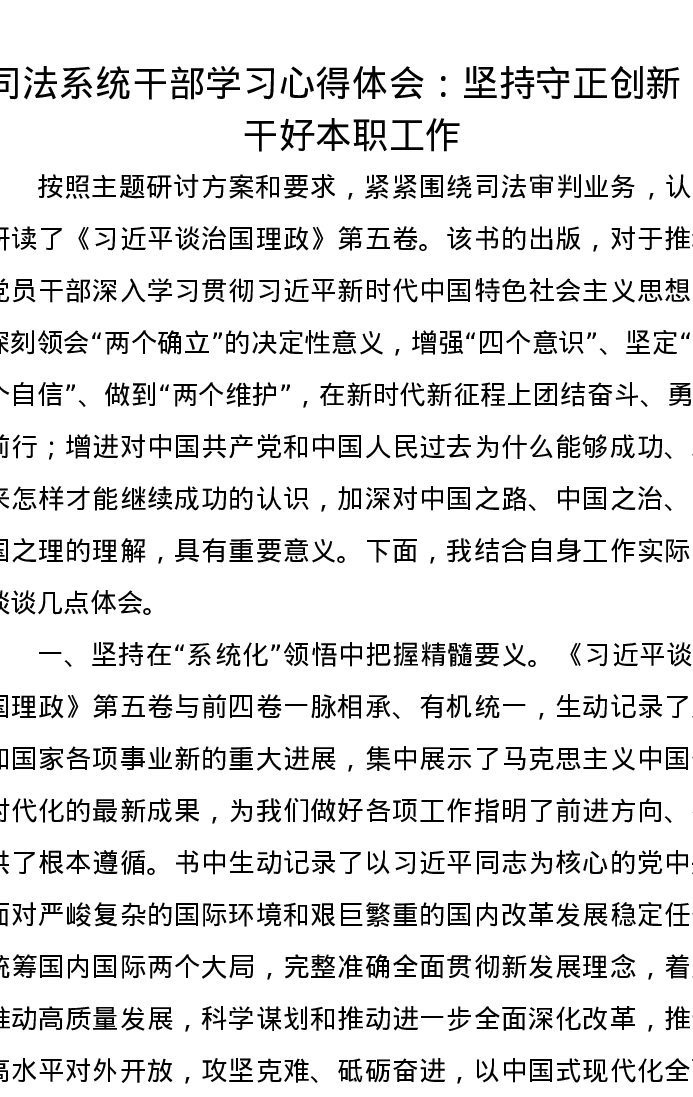 司法系统干部学习心得体会:坚持守正创新,干好本职工作