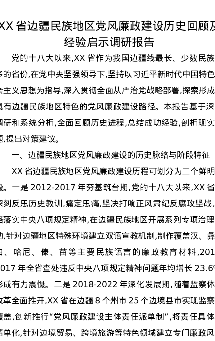 XX省边疆民族地区党风廉政建设历史回顾及经验启示调研报告