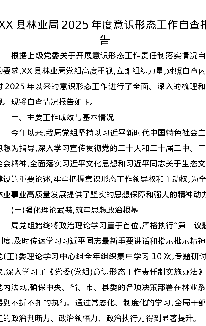 XX县林业局2025年度意识形态工作自查报告