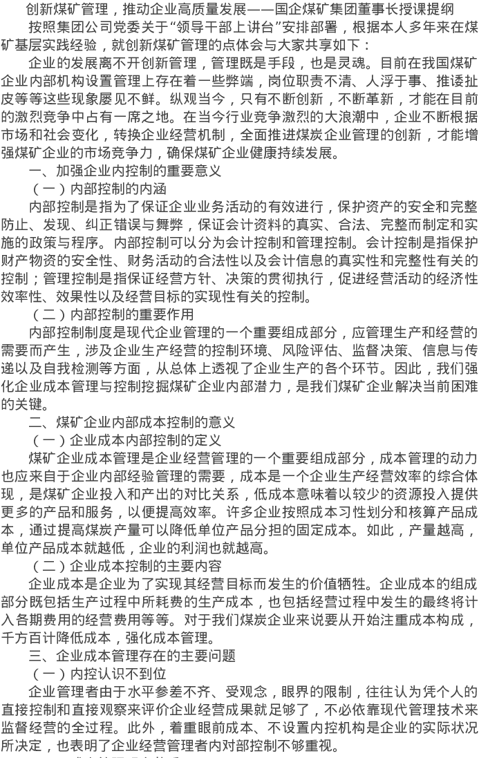 20220404创新煤矿管理,推动企业高质量发展——国企煤矿集团董事长授课提纲