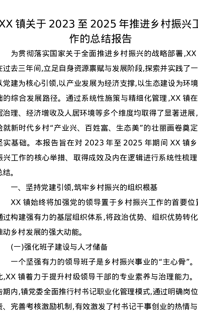 XX镇关于2023至2025年推进乡村振兴工作的总结报告