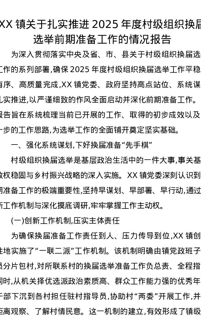 XX镇关于扎实推进2025年度村级组织换届选举前期准备工作的情况报告
