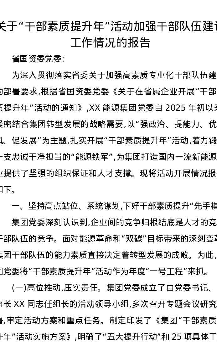 关于“干部素质提升年”活动加强干部队伍建设工作情况的报告