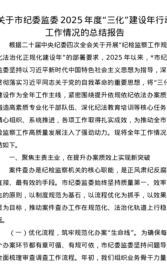 关于市纪委监委2025年度“三化”建设年行动工作情况的总结报告