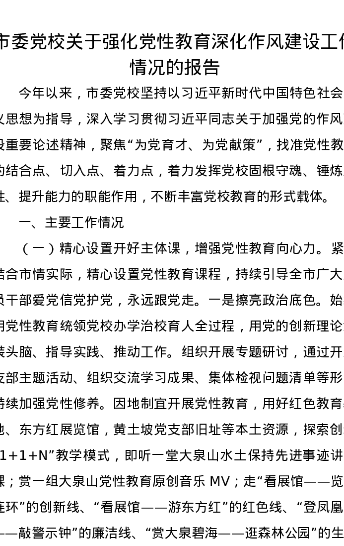 市委党校关于强化党性教育深化作风建设工作情况的报告