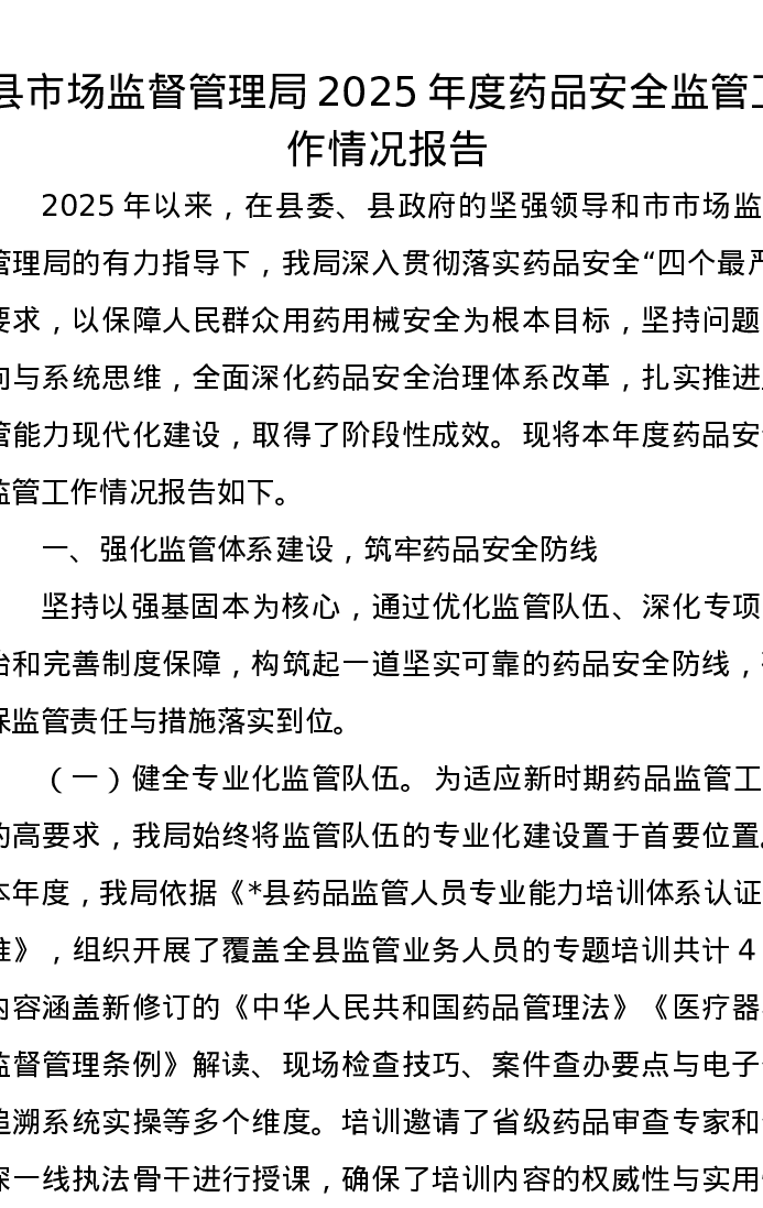 县市场监督管理局2025年度药品安全监管工作情况报告