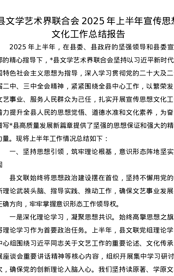 县文学艺术界联合会2025年上半年宣传思想文化工作总结报告