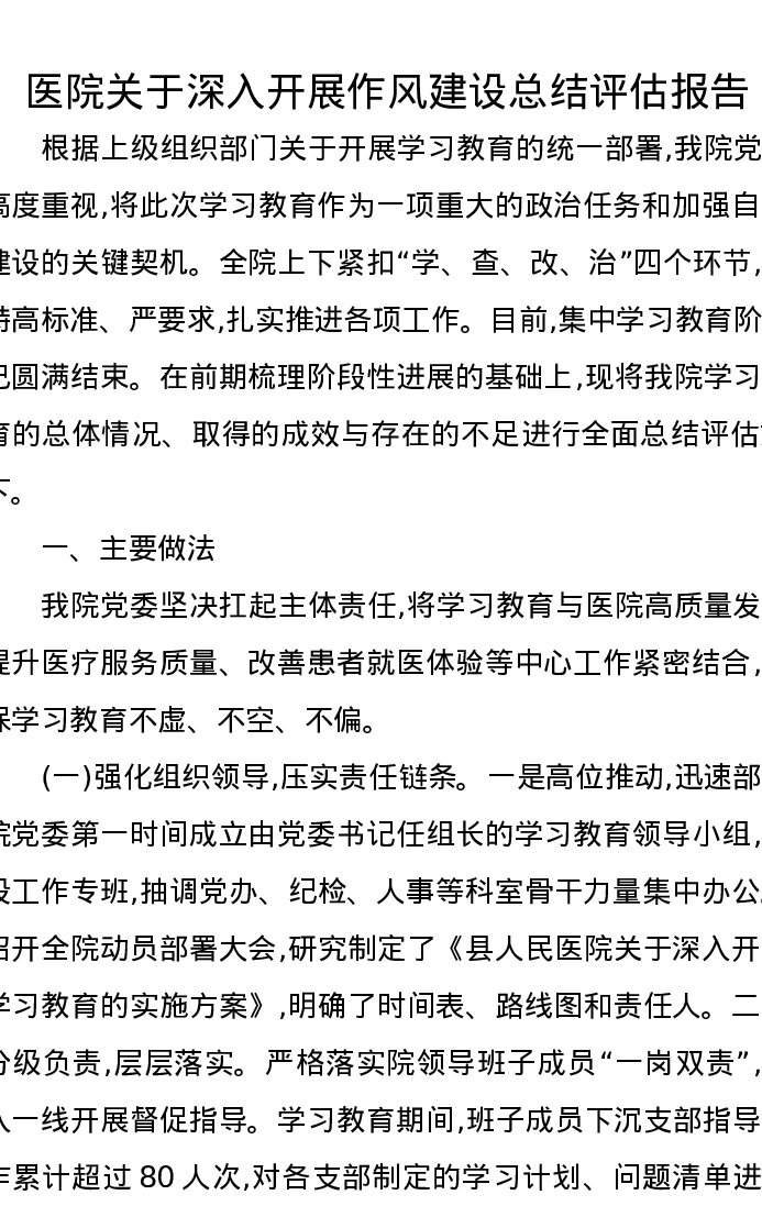 医院关于深入开展作风建设总结评估报告
