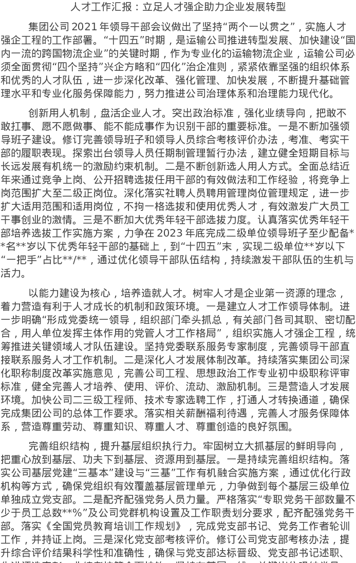 20220416人才工作汇报:立足人才强企助力企业发展转型