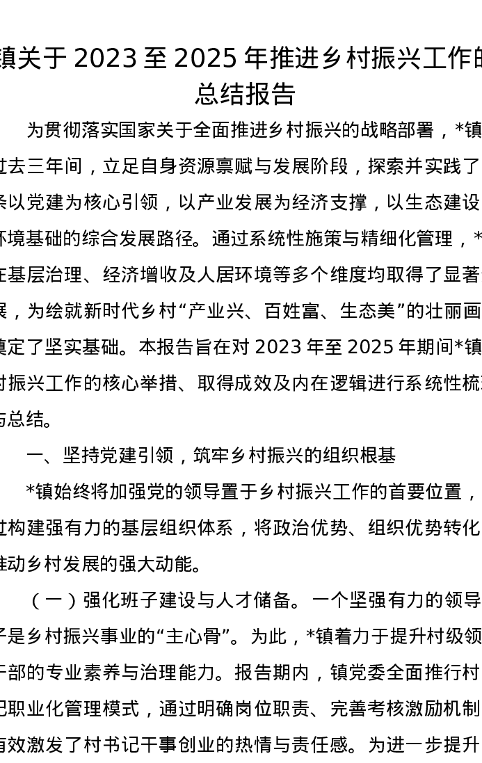 镇关于2023至2025年推进乡村振兴工作的总结报告
