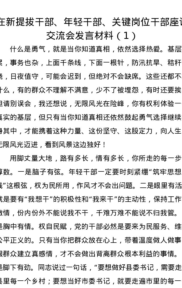 在新提拔干部、年轻干部、关键岗位干部座谈交流会发言材料2篇