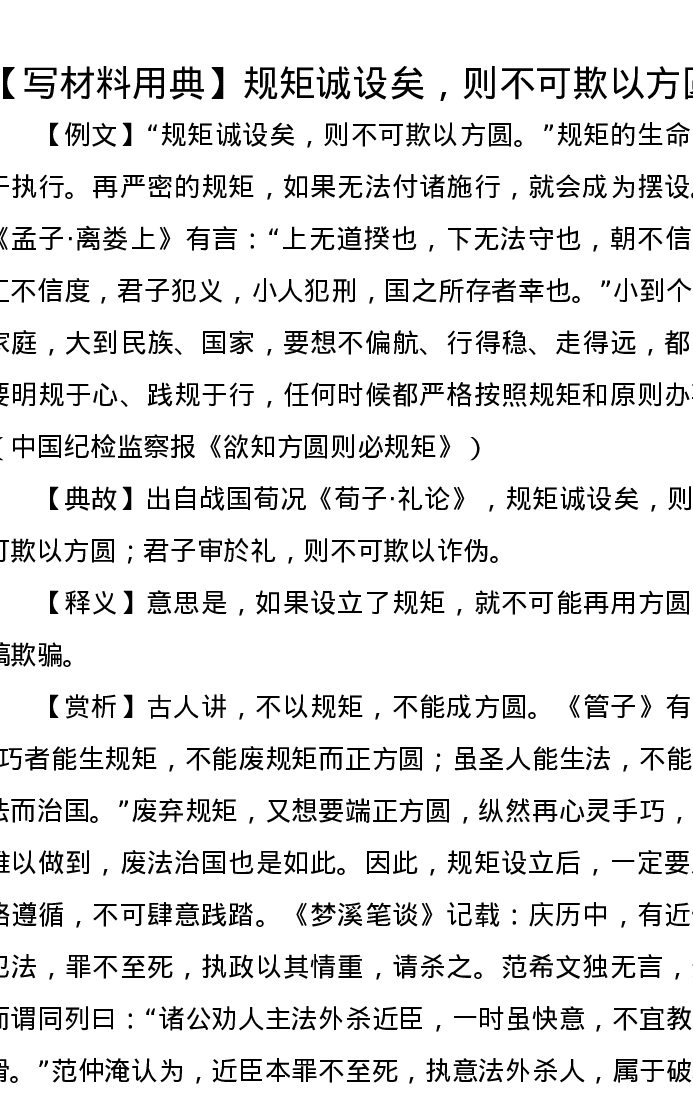 【写材料用典】规矩诚设矣,则不可欺以方圆